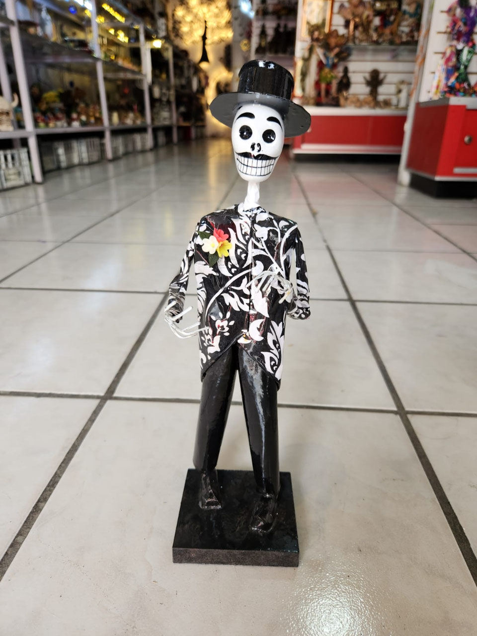 Catrina de papel mache diferentes modelos,de 32cm por 10cm, con cabeza de ceramica.